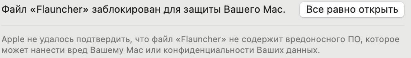 - Там будет сообщение про FLauncher. Нажми кнопку "Подтвердить вход" или "Открыть все равно" (Open Anyway).